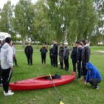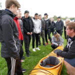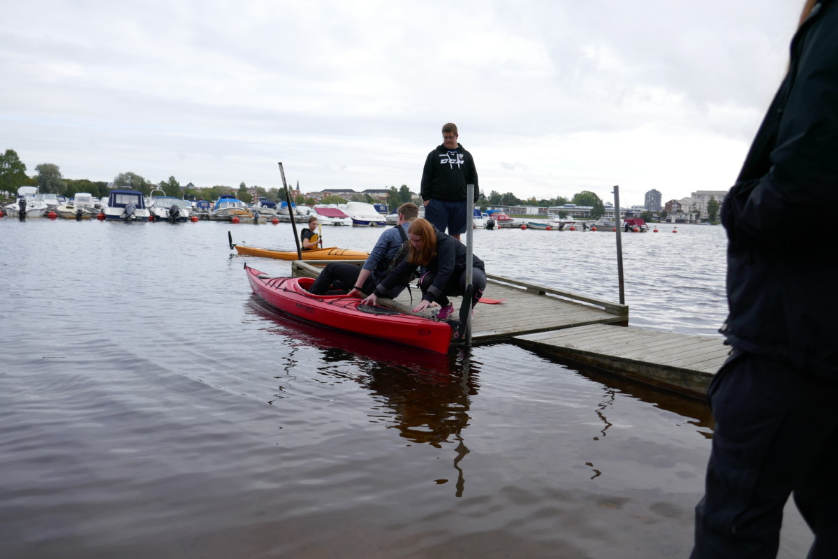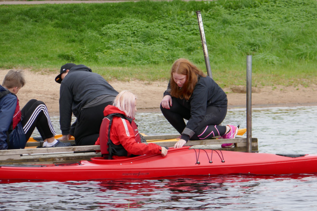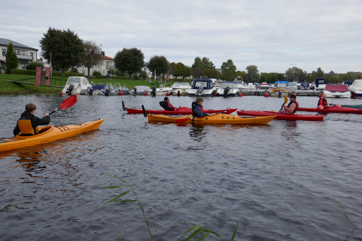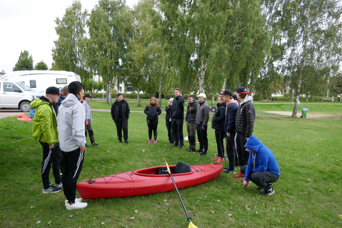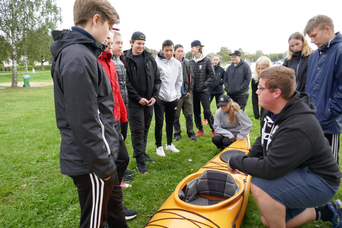 Det började med en genomgång av kajakens delar, säkerhetsaspekter samt paddelteknik. Denna genomgång hölls av eleverna i Äventyr årskurs 3. Ett perfekt tillfälle för treorna att öva på aktivitetsledarskap och repetera de kunskaper och färdigheter som de själva fått tidigare under utbildningen. Dagen blev mycket lyckad med nöjda elever i både årskurs 1 och 3.