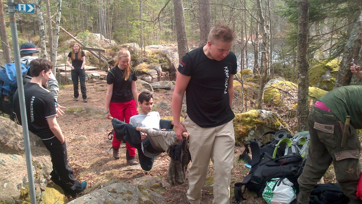 Deltagarna fick också lära sig om växter, hur man bygger bår, HLR och hur man använder en kompass. Alla hittade rätt och det var lite trötta men glada miner på både deltagare och ledare när slutstationen i Lenungshammar närmade sig.