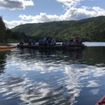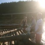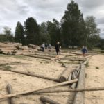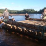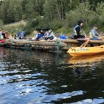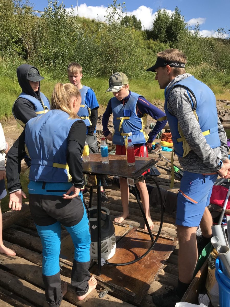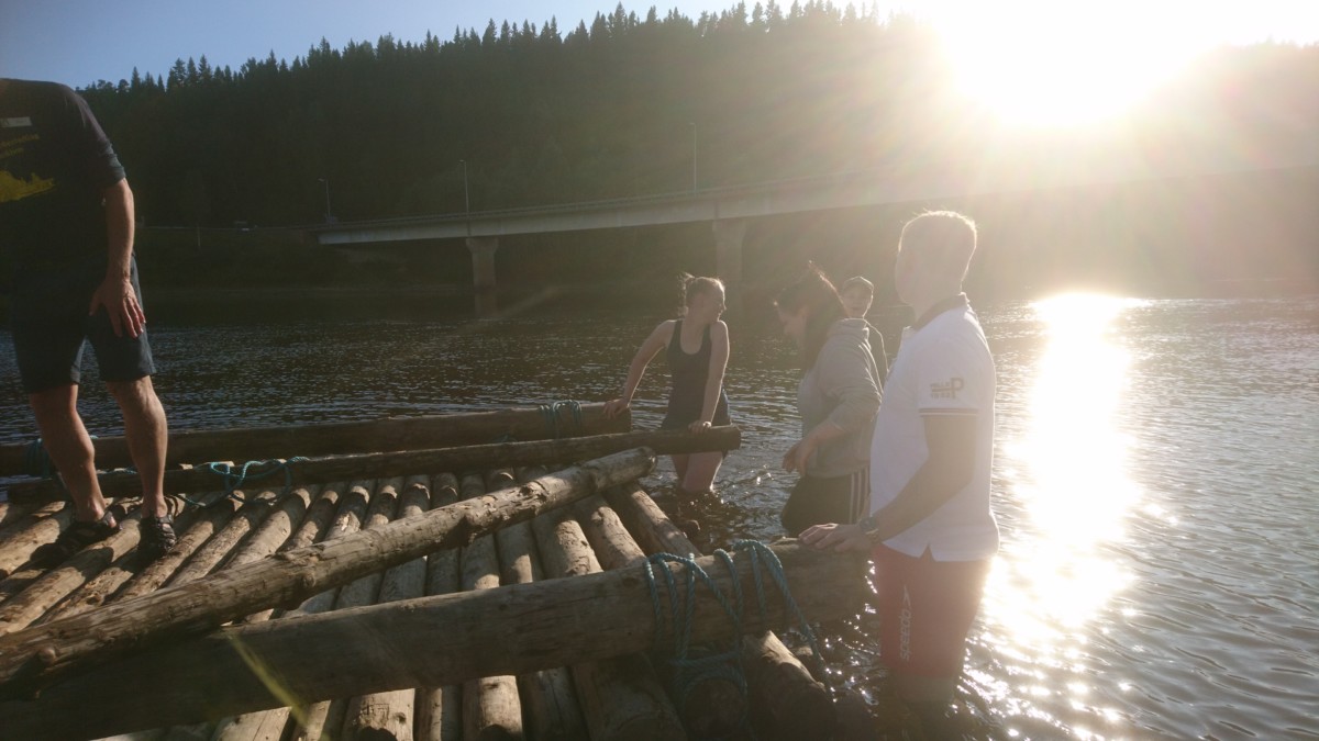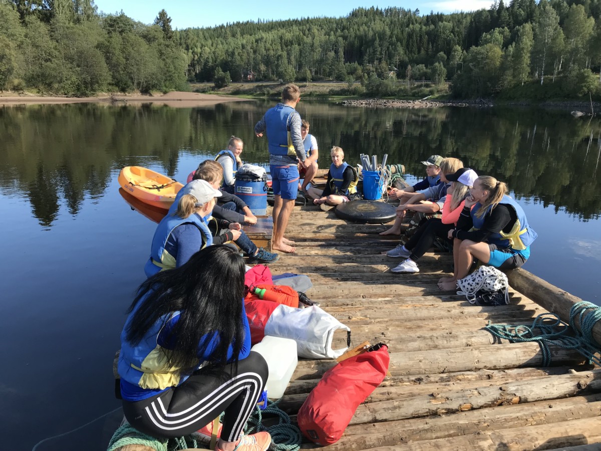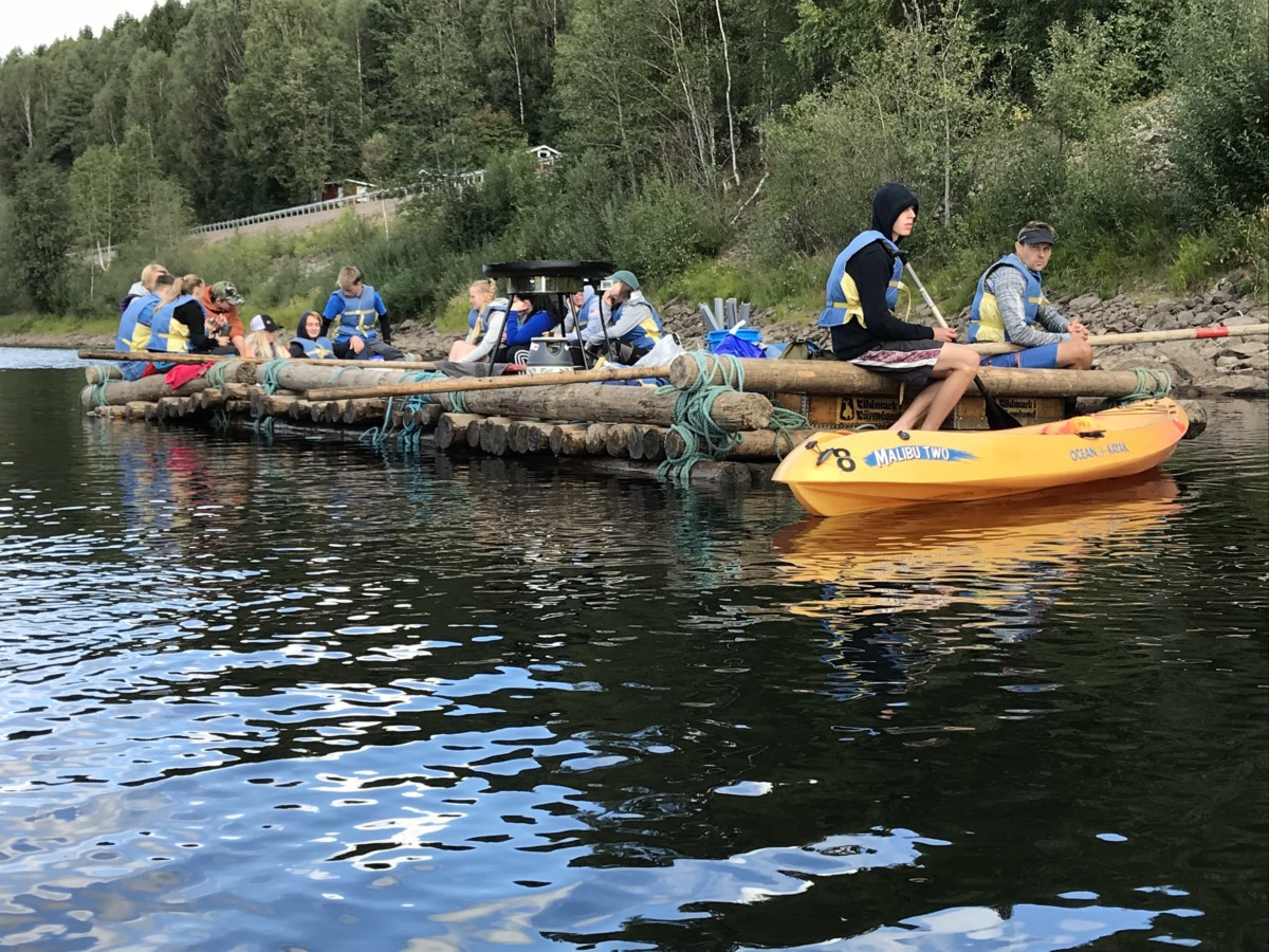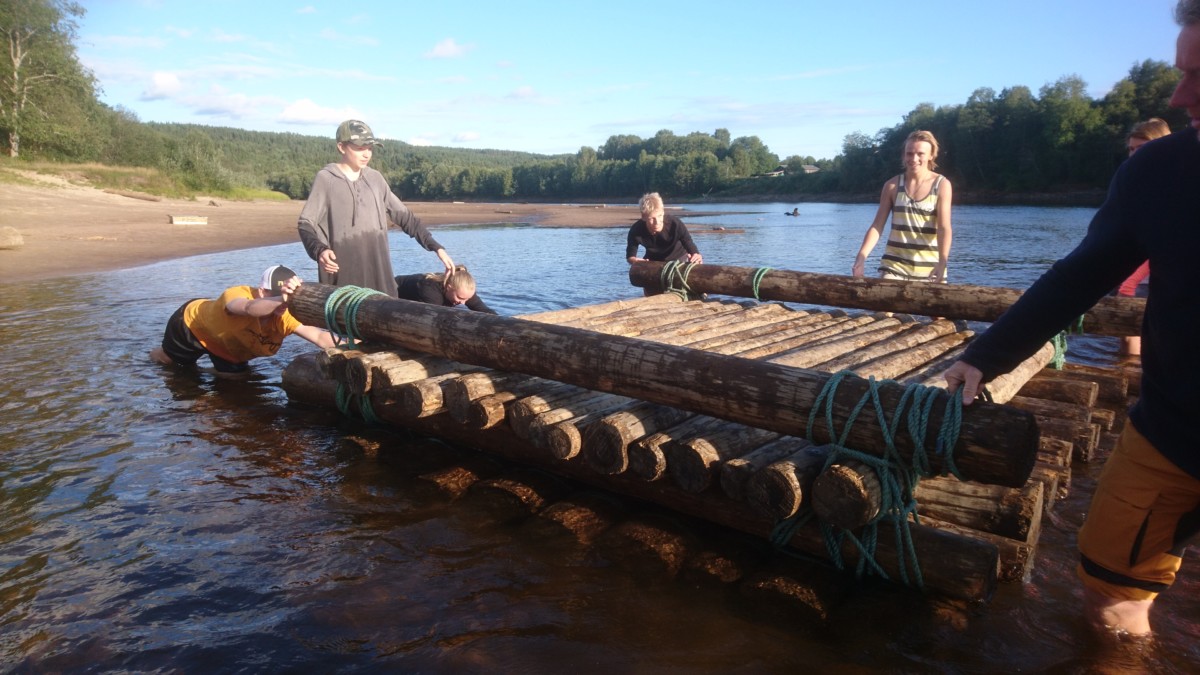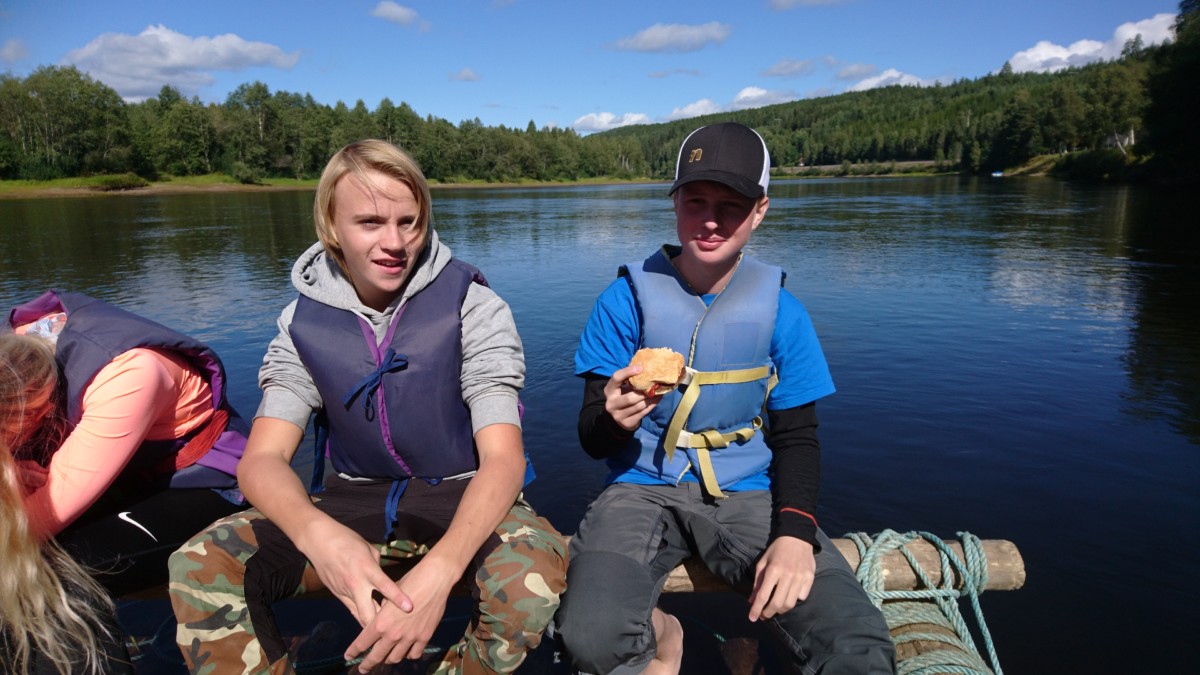 Vi stod upp tidigt och efter en härlig frukost ute så bar det iväg med flotten nedför Klarälvens idag lugna ström. Strålande sol och kristallklart vatten var en underbar start på dagen. Vi gled lugnt nedför älven och fick några gånger göra en gemensam insats när flotten som vägde ca 5 ton fastnade i en oförutsedd sandbank. Hårt arbete i dessa stunder gör att middagen som tillagades på flotten smakade extra gott. Färden tog ca 5 timmar och efter det så demonterade vi flotten vilket gick mycket fortare än att sätta ihop den. Trötta ungdomar fick nu chansen att vila lite i bilen då vi åkte mot Lilltjärn i Örnäs. Väl framme var vi alla hungriga och vi gjorde en stor kycklingwok i vår jättelika stekpanna som nu börjat bli välanvänd.  Mätta i magen och med tälten uppsatta så såg vi fram mot ett storslaget fiske där vi dock blev besvikna, det nappade inget idag. Alla var lika glada för det och vi avslutade kvällen med en skön brasa under en klar stjärnhimmel.
