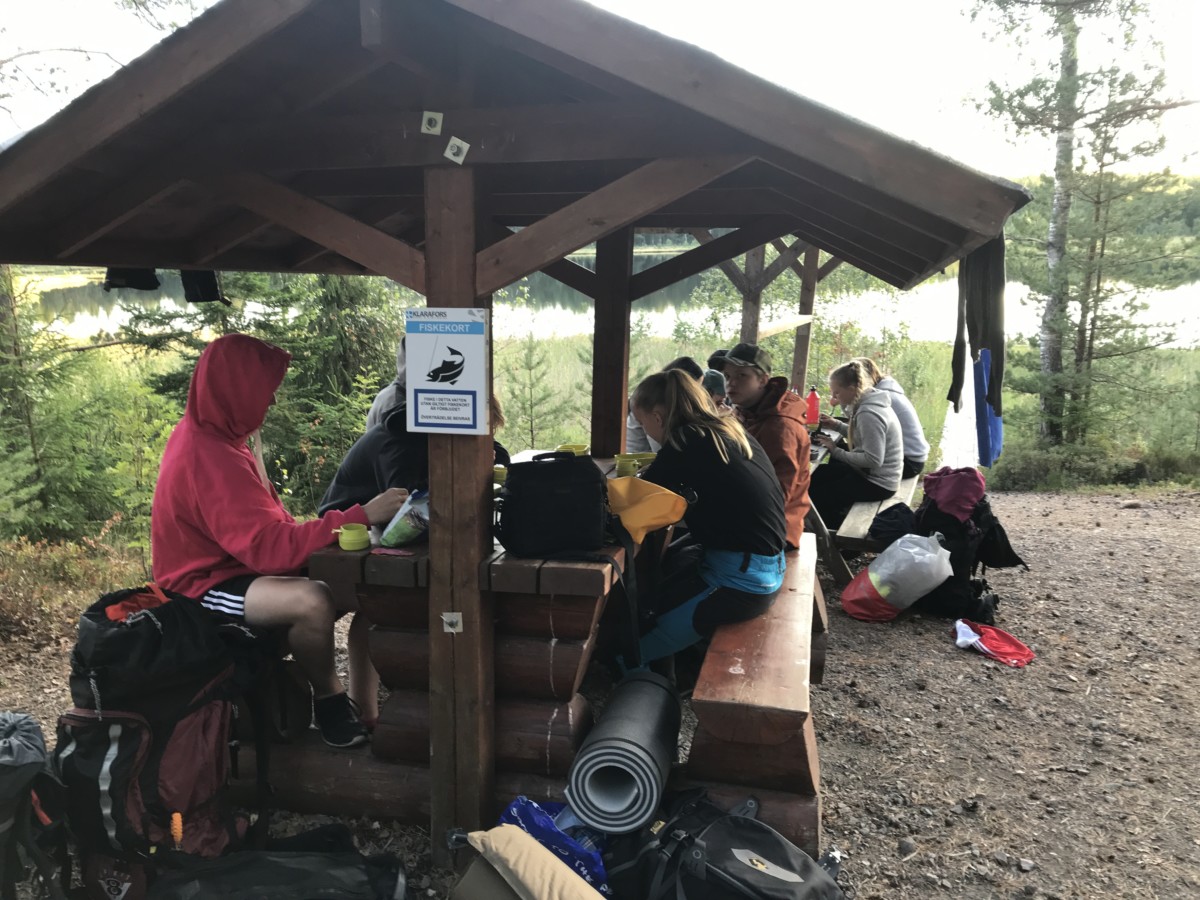 Efter en skön frukost och demontering av våra tält så avslutades vårt läger med en mountainbiketur mot Forshaga. Vägen var trevlig både genom mindre stig och större väg. Vår tur med vädret höll i sig hela resan och regnet kom när vi närmade oss skolan. Glada och med nya upplevelser i bagaget kom vi hem och ser fram mot nya resor.”