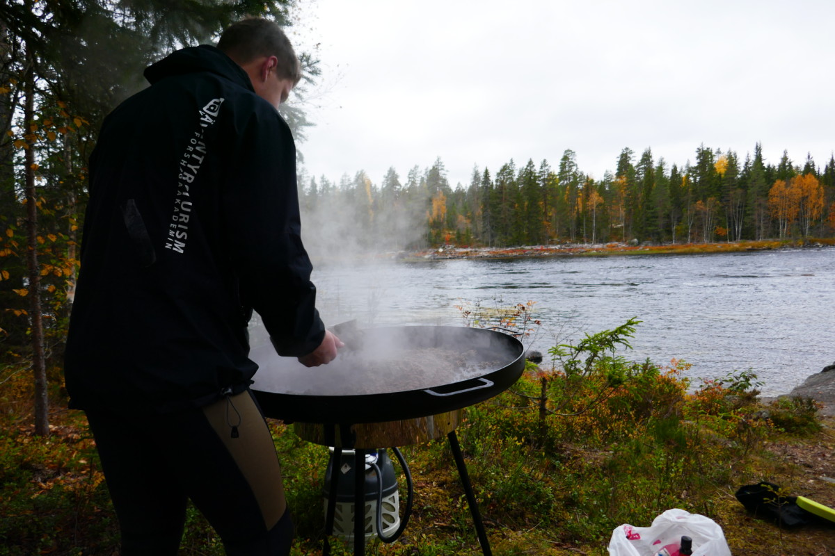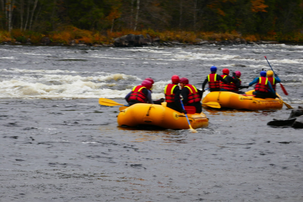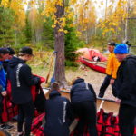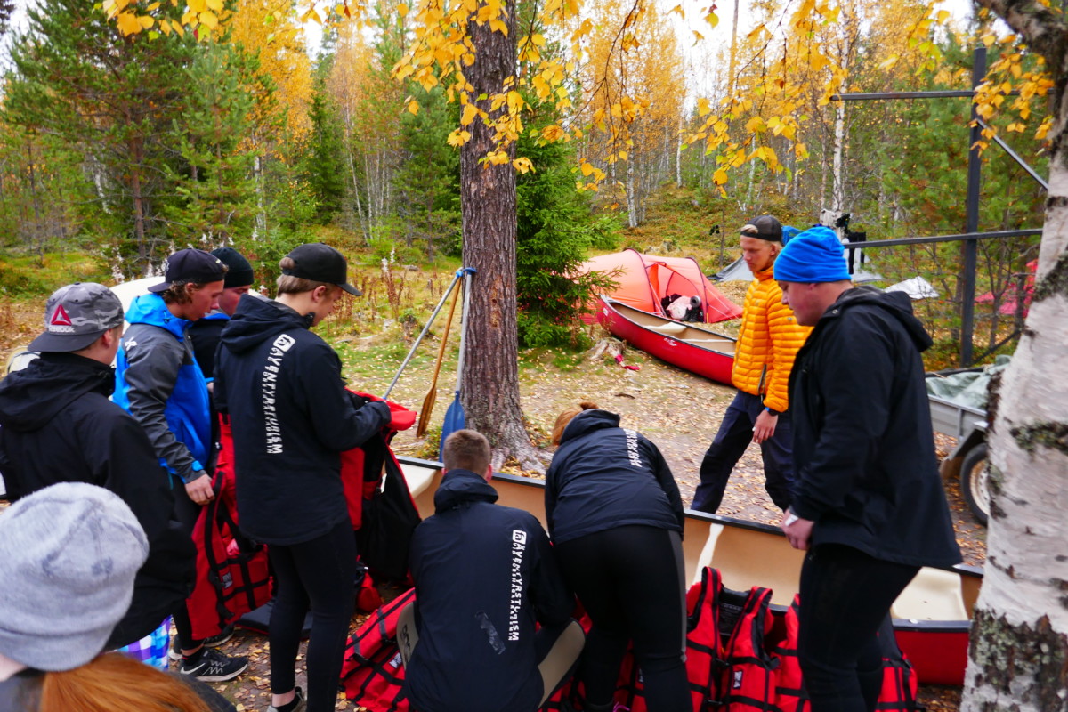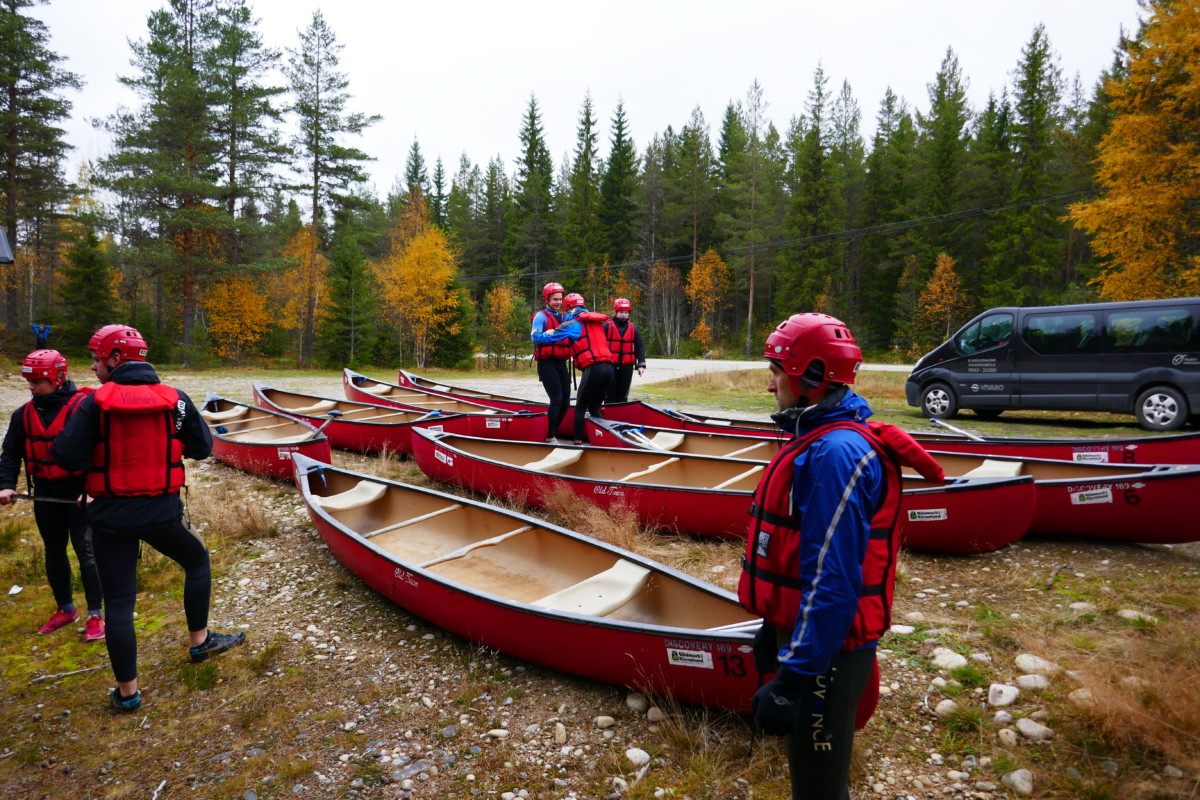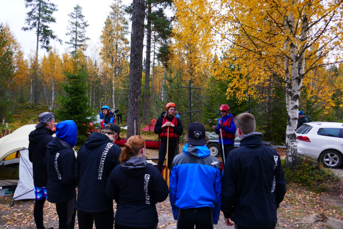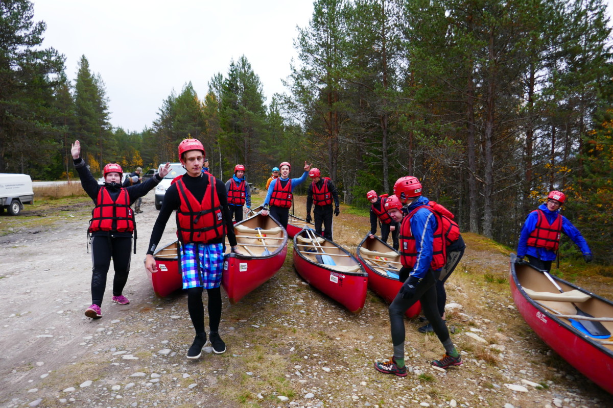 Våra instruktörer var elever från kursen Turism och Friluftsliv vid Klarälvdalens folkhögskola. Efter en noggrann säkerhetsgenomgång var det dags att pröva paddlarna i kanoter på vattnet. Nu gällde det att hålla huvudet kallt utan att blöta ner sig genom ofrivilliga bad. De skummande vågorna fick pulsen att rusa och det blev en dag av snabba beslut för att undvika stenar och sk ”valsar” där vattnet roterar som i en tvättmaskin.