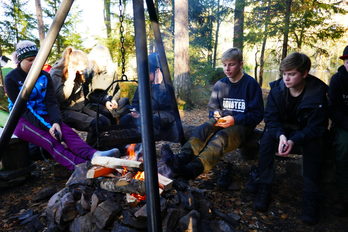 - Samling runt lägerelden.