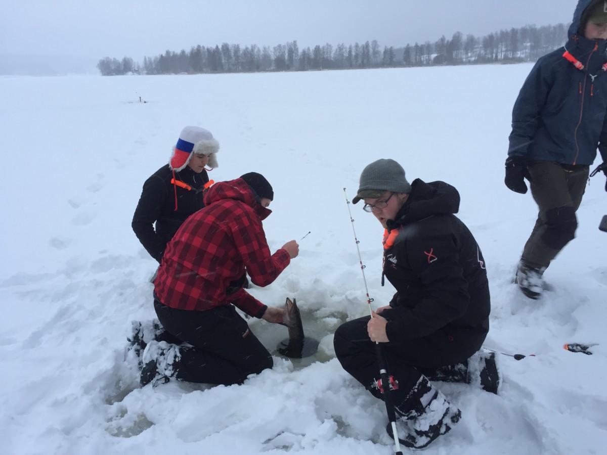 Under sista veckan har årskurs 2 här på SportfiskeAkademin haft isfiske efter abborre och gös. Abborren fiskades med pimpelfiske och gösarna fiskades via ismete. Den sista tidens snö på isen verkar dock ha gjort fisket lite trögt men lite fisk kom det upp trots de svåra förhållandena!