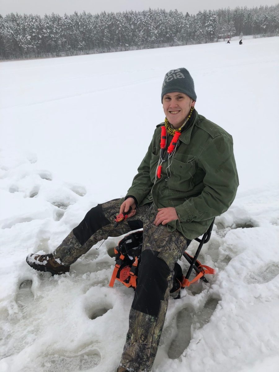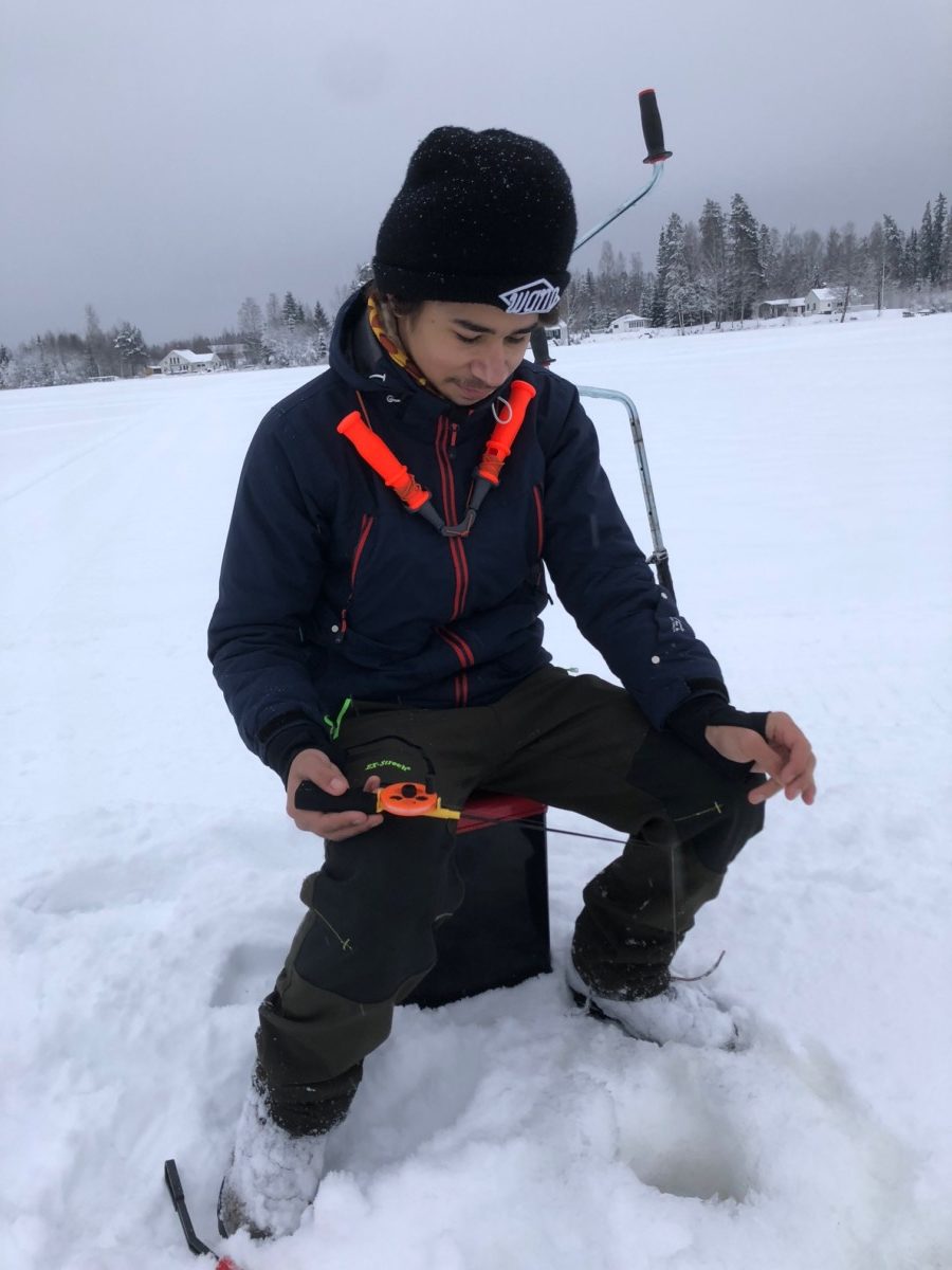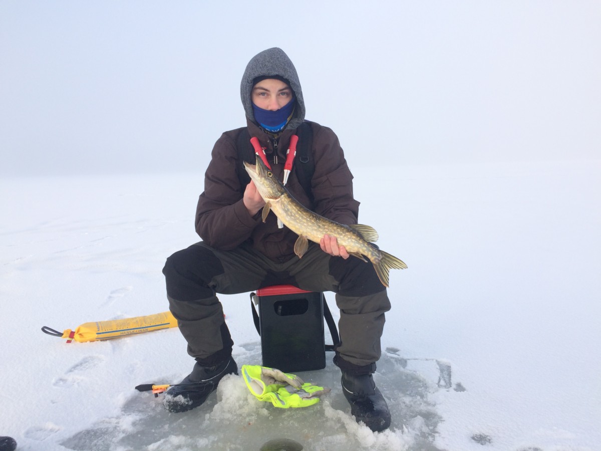 - Samuel med gös, och ja, han har isdubbar under jackan!