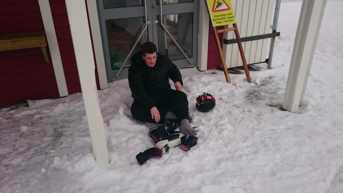 - Simon fixar med pjäxorna