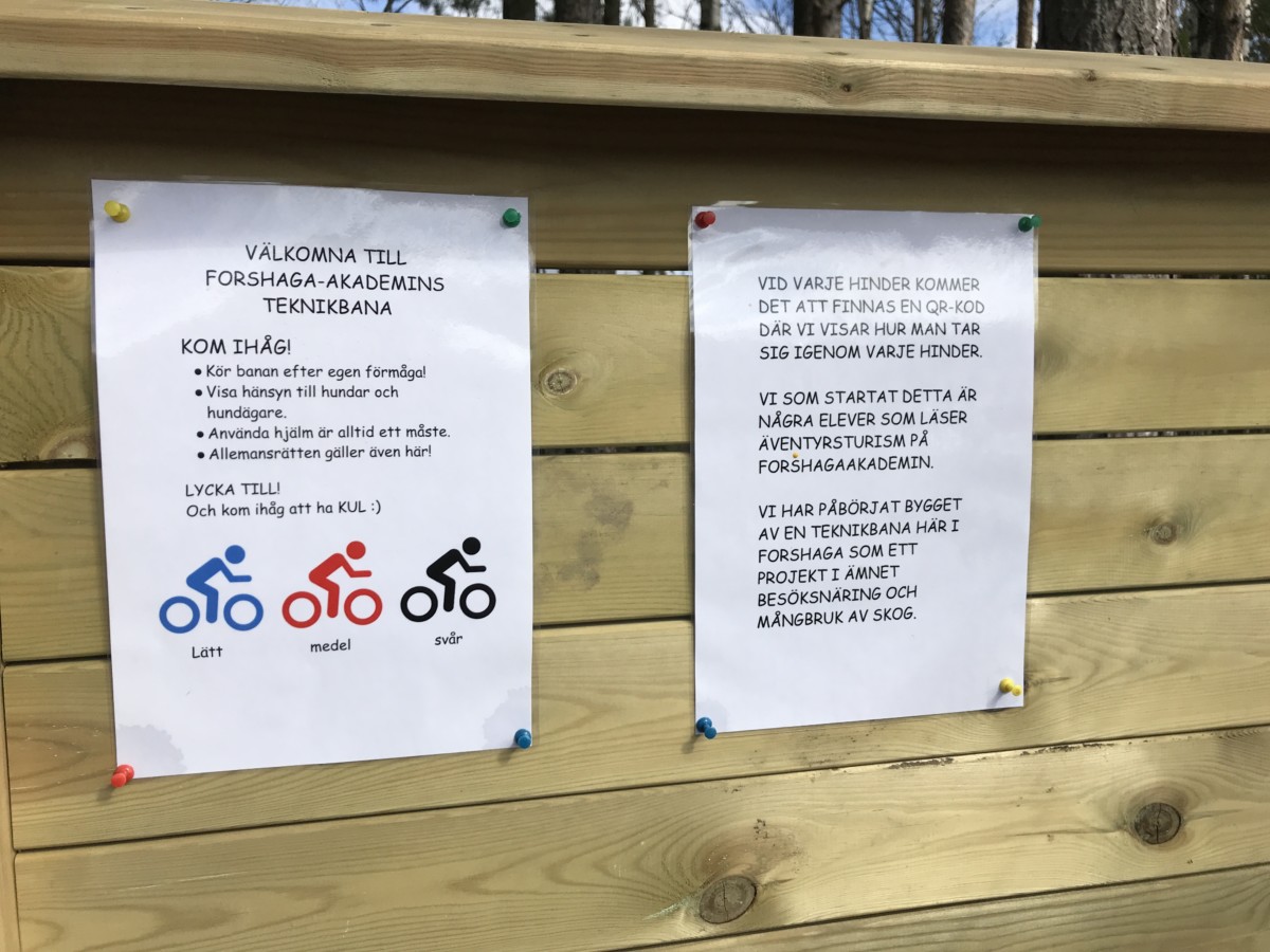Det har varit viktigt för klassen att arbeta hållbart och för att bibehålla naturens egna förutsättningar, såsom naturliga rötter, kurvor och skutt. Tillsammans med Naturskyddsföreningen har klassen dessutom satt upp vildbibon i utkanten av leden, för att främja biologisk mångfald. I slutet av april stod teknikbanan, som ligger naturskönt längs med Klarälven i Forshaga, klar och kunde invigas. Till varje hinder på banan finns en skylt med angiven svårighetsgrad, korta instruktioner och en QR kod.