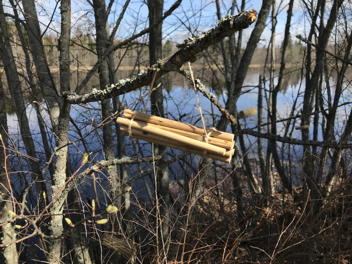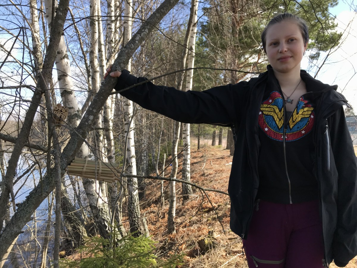 - Erika vid ett av vildbibona som satts ut vid banan.
